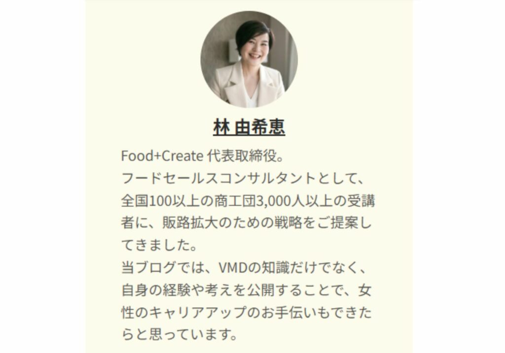 ブランドや企業の世界観を表現し、魅力ある店づくり・売り場演出をするVMDの仕事は、自分の食の仕事と組み合わせることでより強みを強化し、セルフブランディングの柱にもなるに違いない。そう考え、専門資格である「VMDインストラクター」を取得することにしました。